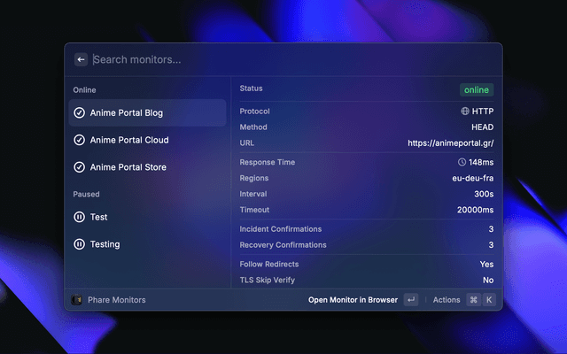 A Raycast extension for managing and monitoring uptime for services using Phare.io.