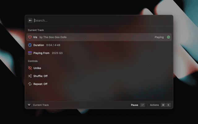 - For controls that work even when the Raycast menu isn't open, set up global shortcuts in Raycast Preferences (