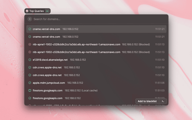 3. Whitelists and Blacklists - Quickly whitelist or blacklist any domain from query logs or top queries command.