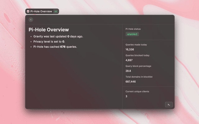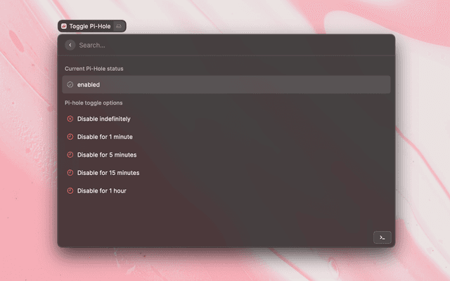 Control and monitor your Pi-hole instance easily through raycast. There are various features baked into this extension,