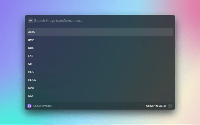 • Convert between many different image formats, including WebP, SVG, and AVIF