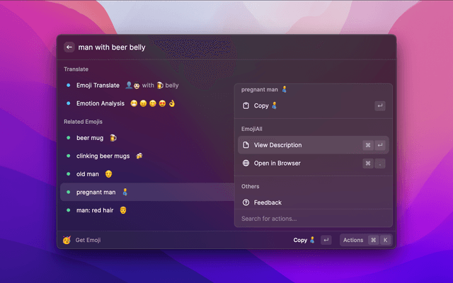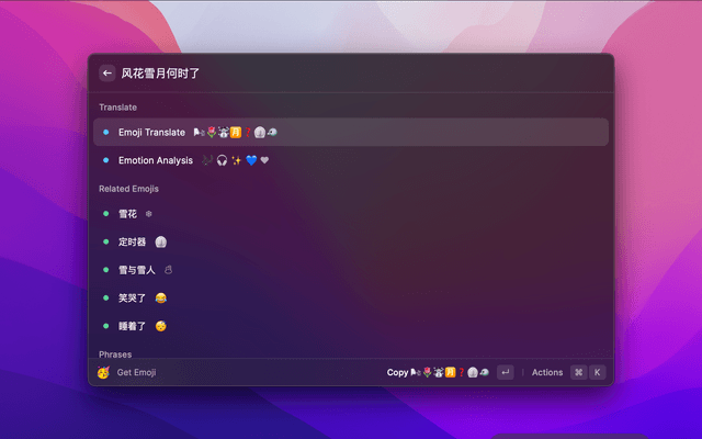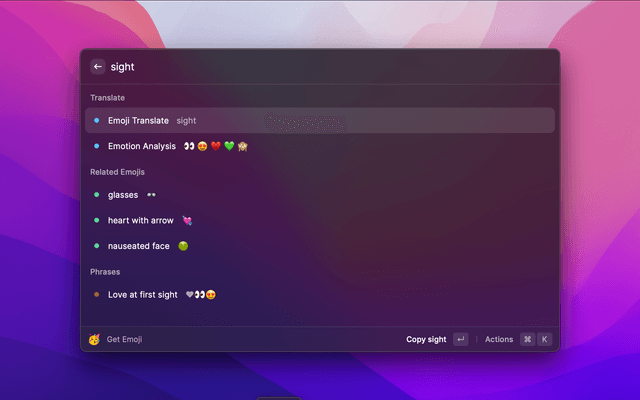 An intelligent Emoji Dictionary🙃 helps to get related Emojis, Phrases, and Translations in Raycast, powered by Deep Learning Emoji Prediction (DLmoji) and comparable intelligent APIs.