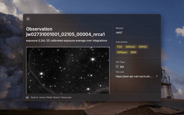 • Provides a single Raycas command - "James Webb Space Telescope"