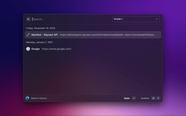 Search open tabs, bookmarks, collections and history in Microsoft Edge.