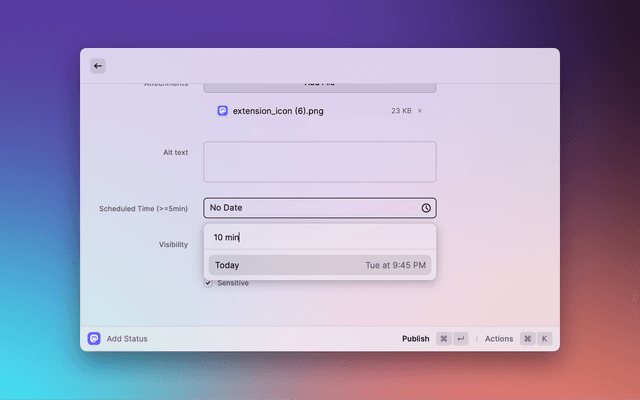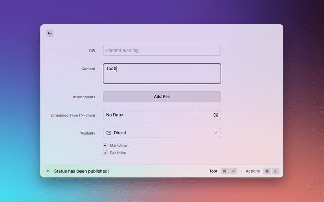 Toggle the "Sensitive" checkbox to mark the attached image as sensitive, or add a content warning to the status.