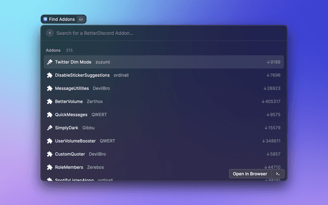 Allows you to search and view BetterDiscord addons inside Raycast