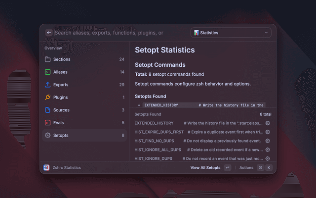 | 📊 Zshrc Statistics | Overview of your entire zshrc configuration | — |