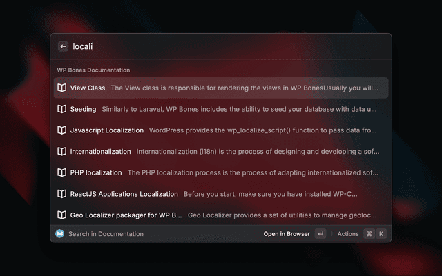 If you know Laravel Framework, you will love WP Bones Framework too. I was inspired by Laravel while developing WP Bones. Even though, as you can imagine, the WordPress environment doesn’t support Composer as we wished. So, you will find a lot of things similar to Laravel and some others very different.