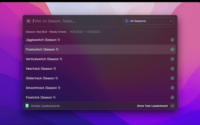 In theory, there should not be more than one active season. Aimlab will determine the currently active season. You can filter the displayed seasons based on their active status. There are two options available: 'All Seasons' or 'Only Active Seasons'.