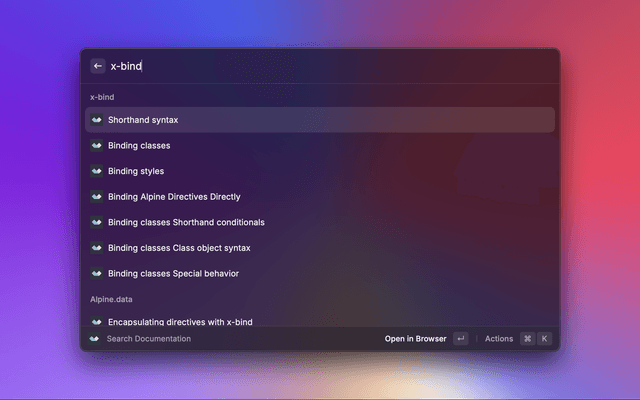 Alpine.js Documentation Search