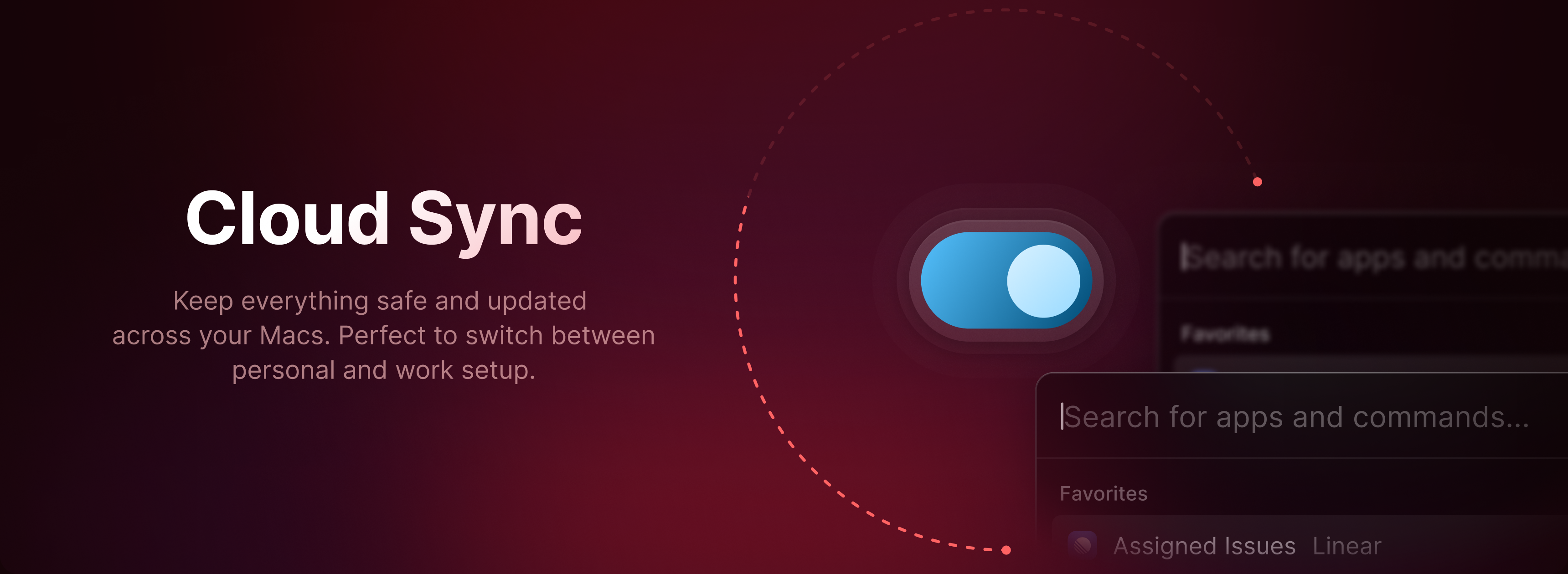 One of our top feature requests was having Raycast synchronized across Macs to allow easy switching between personal and work setups.