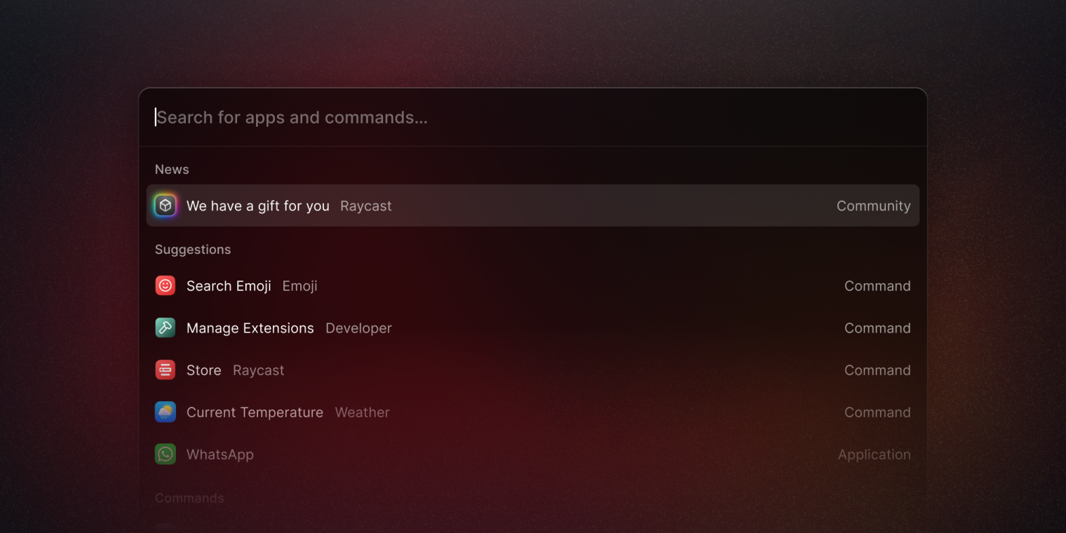 We added a new look when opening the Raycast app with the much more simplistic approach of only showing the navigation bar to search and the action bar for showing any top-of-the-list items and primary actions. Configurable from within Preferences, the Compact Mode is now a staple of Raycast.