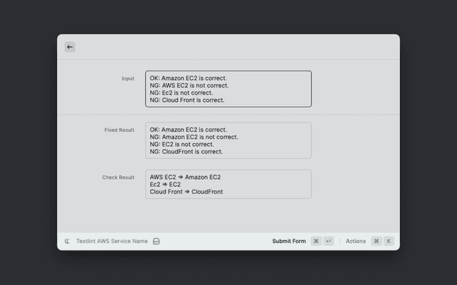 Submitting the form will display the text check items and the modified text.