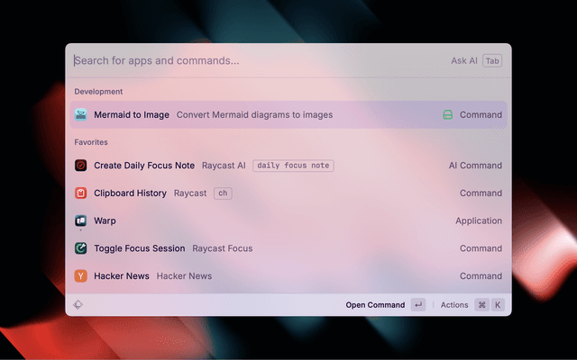 Use @mermaid-to-image in Raycast AI to generate a diagram from a description.