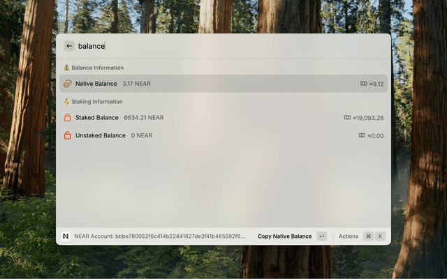 - Install the NEAR Rewards extension from the Raycast Store