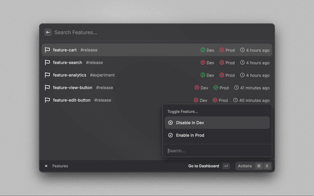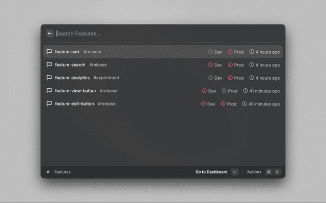 This is the Raycast extension for toggling feature flags that registered in Unleash. It helps you quickly toggle a feature from anywhere on your mac. It's packed with features like,