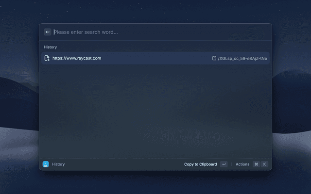 Raycast AIRaycast NotesRaycast FocusClipboard HistoryWindow ManagementSnippetsFile SearchQuicklinksCalculatorCalendarSystemEmoji Picker