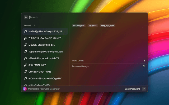 Generate Password is an extension for Raycast that allows you to generate strong and memorable passwords.