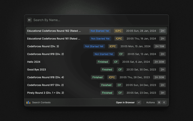 Gives details about latest contests and details about any handle
