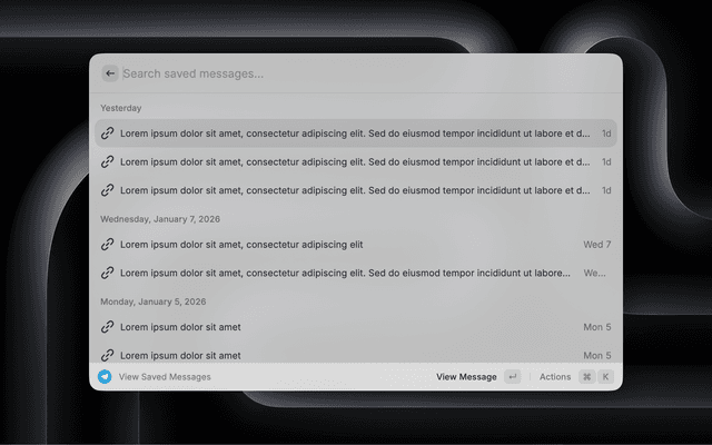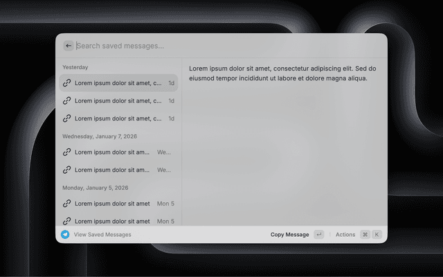 • 📥 View Saved Messages: Browse your Telegram saved messages directly in Raycast