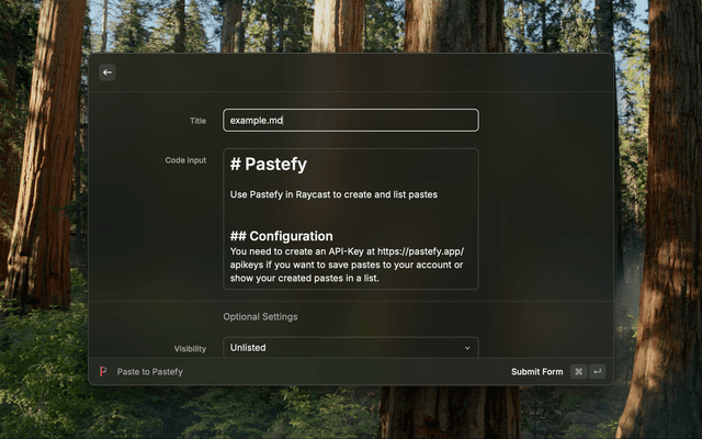 You need to create an API-Key at https://pastefy.app/apikeys if you want to save pastes to your account or show your created pastes in a list.