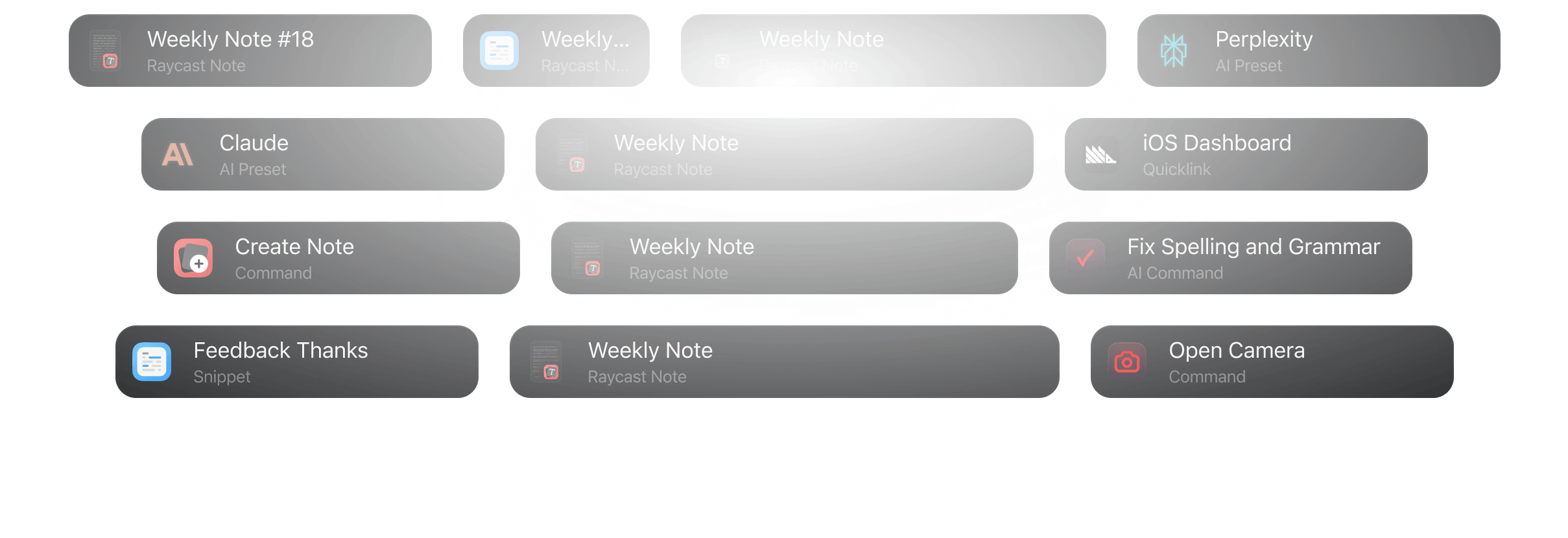 Make Raycast yours by customizing your home with the content and actions you need most.