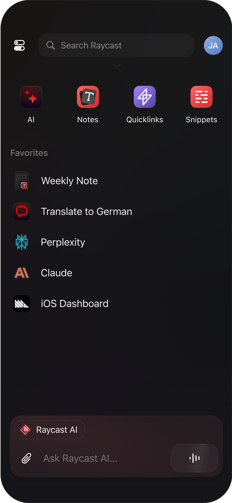 Designed to work well beyond the app icon. Raycast is integrated into many iOS features.