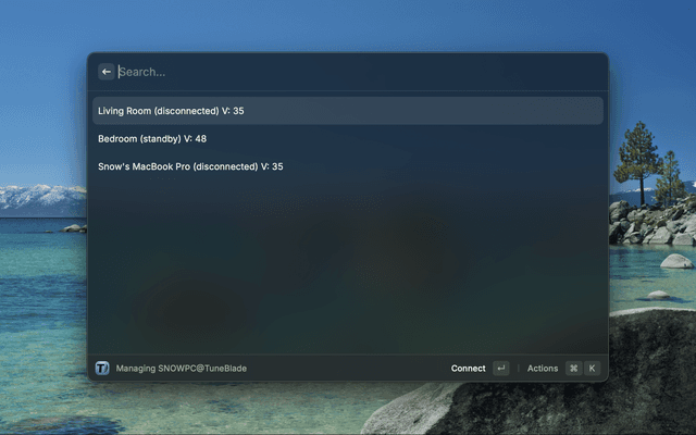 Control remote or local Tuneblade instances, adjust volume, and manage connections seamlessly.