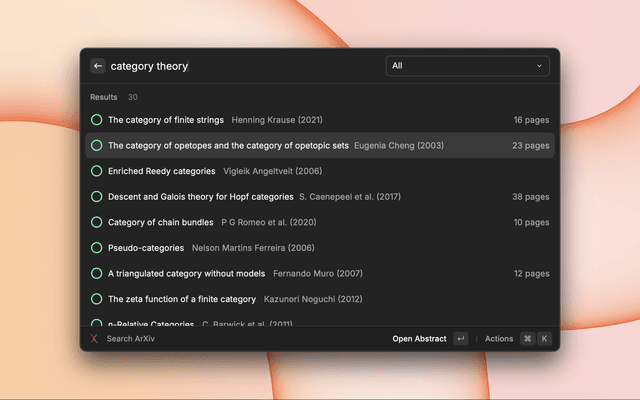 - Open Raycast and search for "Search ArXiv"