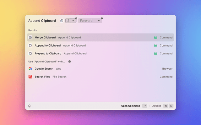 Append or prepend selected text to your clipboard with different separators