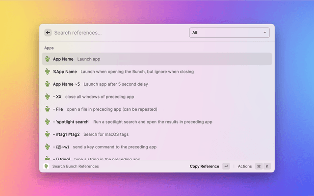 Bunch is a macOS automation tool that takes a folder of plain text files containing lists of apps and commands to launch and provides an easy-to-use menu for triggering them.