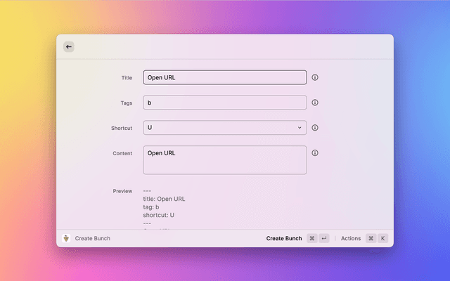Control Bunch via Raycast. Bunch is a Mac automation tool from Brett Terpstra