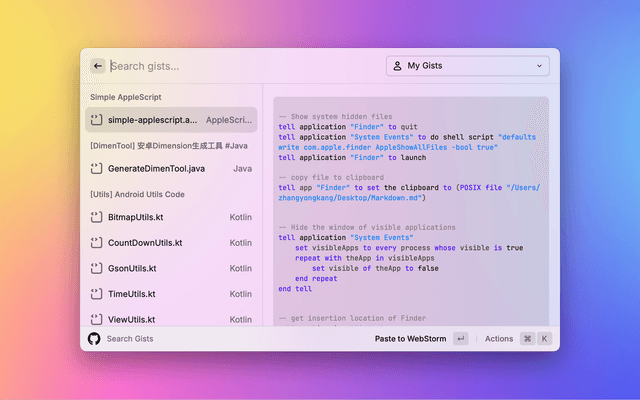 This extension brings GitHub Gist support to Raycast via OAuth 2.0.