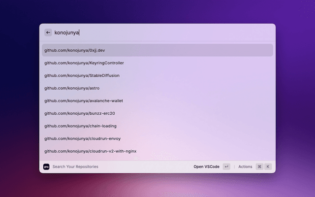 ghq extension is currently no plans to implement create, rm, and root because there are few situations where you want to use Raycast to perform these functions.