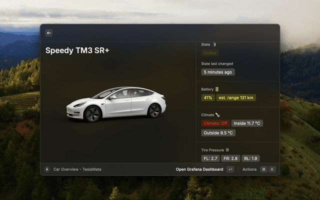 Raycast Extension to retrieve info about your Tesla from your TeslaMate instance.