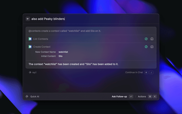 Contexts lets you manage and access large text repositories for AI interactions. Create, edit, and organize contextual information about companies, products, or documentation that can be referenced during AI conversations. Seamlessly handle extensive context without cluttering system instructions, allowing for more efficient and focused AI interactions.