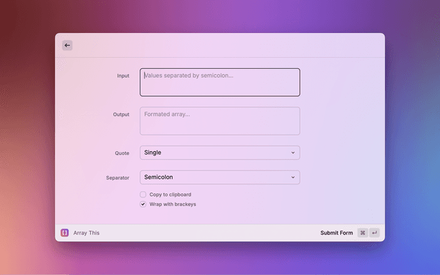 Raycast extension to format list of items into an array.