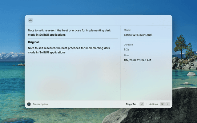 Quick access to your VoiceInk transcriptions