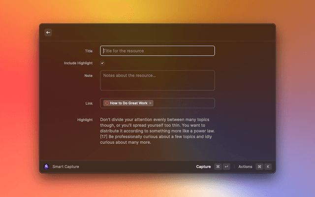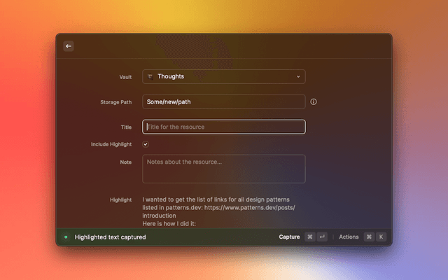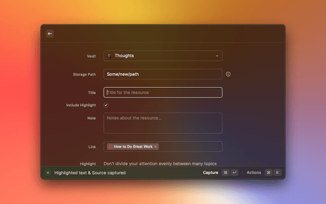 Obsidian Smart Capture is a context aware tool to quickly capture anything on your Mac with minimal effort.