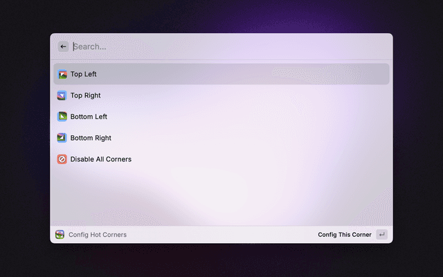 A Raycast extension for quickly configuring macOS hot corners behaviors. HotCorner