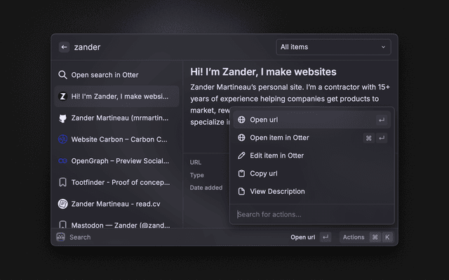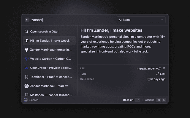 Find this extension on the Raycast store Otter is released under the MIT license. Follow @zander