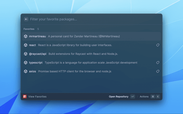 Raycast extension to search and favorite npm packages