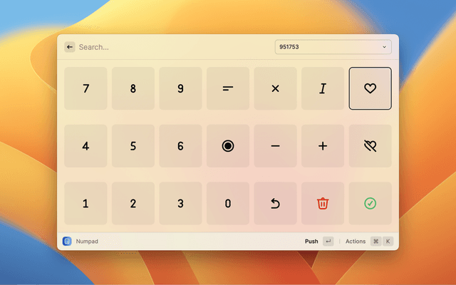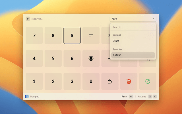 The NumPad Extension for Raycast is a convenient tool designed to enhance your workflow by providing easy access to a virtual numpad on devices that lack a physical numpad, such as Mac computers. This extension was created to address the challenges of using a virtual keyboard or configuring external keyboards to simulate numpad functionality, especially when dealing with tasks that require numerical input, such as passwords, calculations, and data entry.
