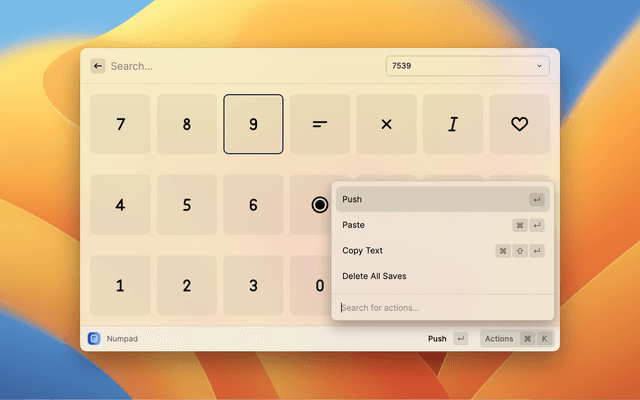 While there are solutions available online for simulating numpad functionality, they often involve complex setups or third-party software. Additionally, resources specifically addressing the need for a numpad extension within the context of Raycast are scarce. This extension aims to fill that gap by offering a dedicated and user-friendly solution tailored to Raycast users.