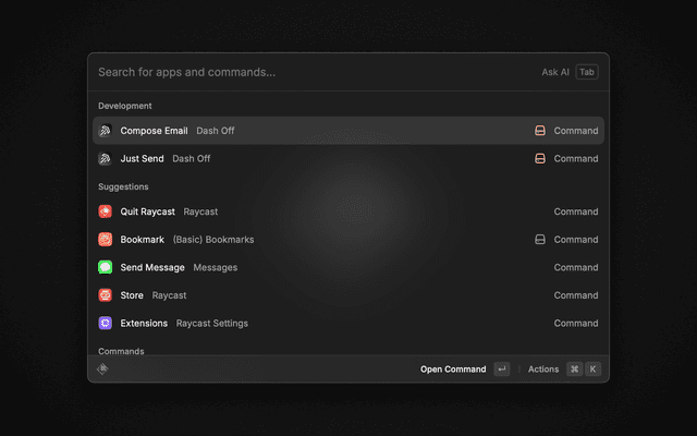 • Just Send: This command will use your text selection as the body of the email and send it to the default recipients in the Extensions Preferences, using the default subject line.