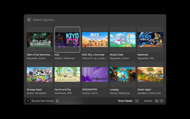 This Raycast extension provides quick and convenient access to Playtester’s database of indie games right from your desktop.
