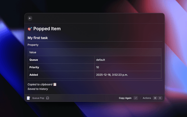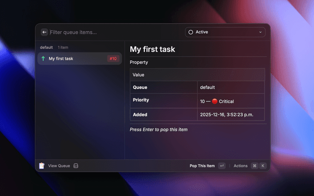 A smart priority queue extension for Raycast that helps you capture and manage tasks with priorities and multiple queues.