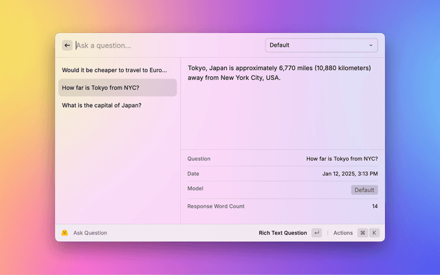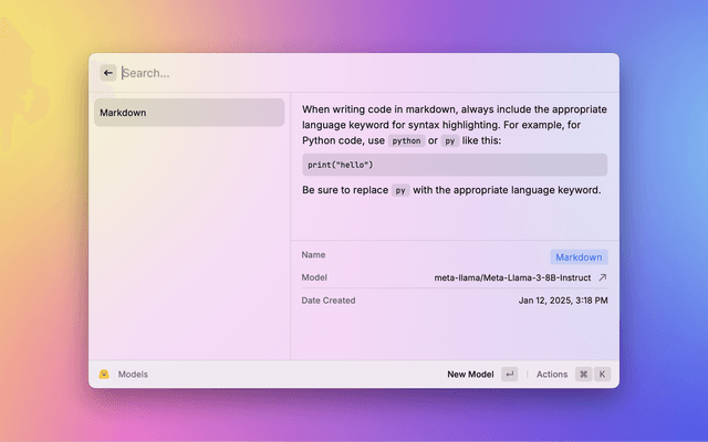 • Ask Questions: Chat with Hugging Face models directly from Raycast.