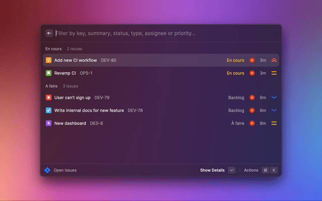 ⌘ + K and scroll down to Configure Extension. Enter your email, API token, and Jira site URL (without https://) on the right. Note that all three must be provided to use API tokens.You can change the default Git branch name in preferences; the following keys are available: