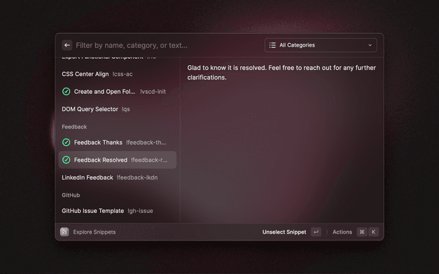 Make the most of snippets, AI commands, AI Presets, Quicklinks and custom themes.